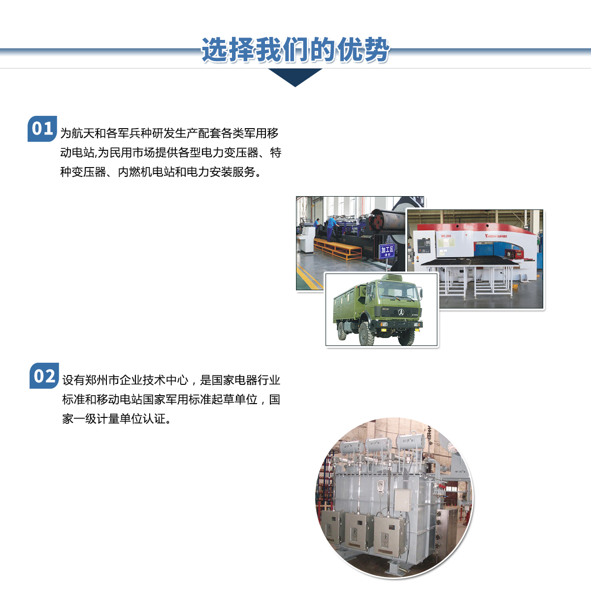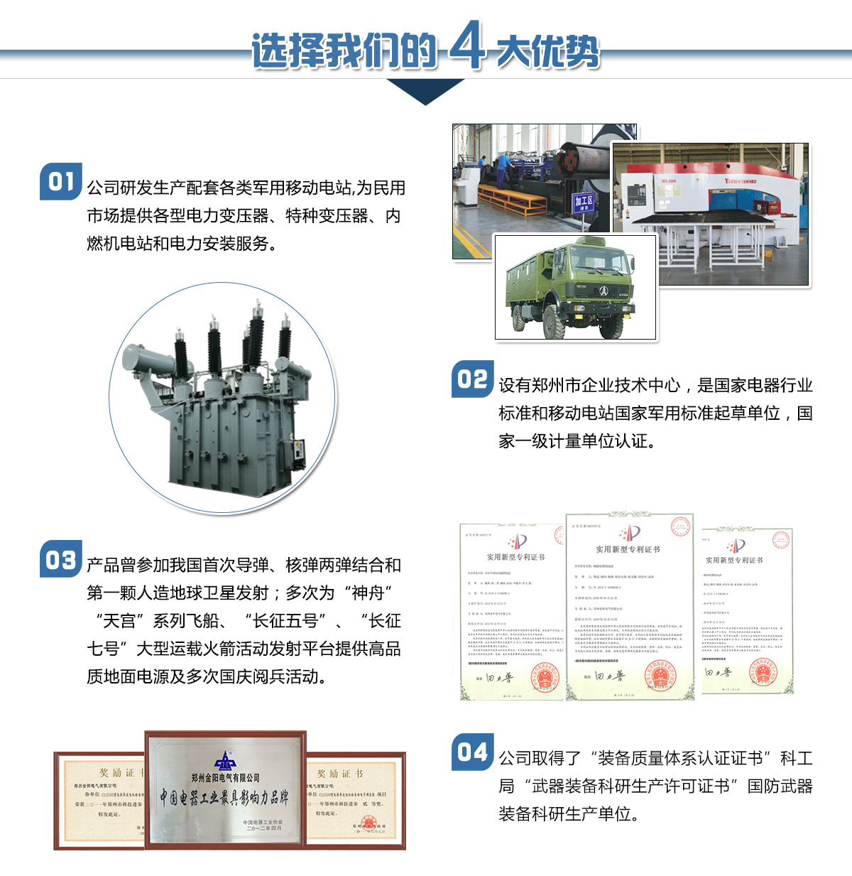 鄭州金陽電氣有限公司是由鄭州市國資委控股的國有獨資企業(yè),是原機械工業(yè)部在上世紀五十年代投資建立的移動電站和電力變壓器生產企業(yè)。公司下設電站公司和變壓器公司及其它配套公司,長期以來在國內移動電站和電力變壓器行業(yè)占有重要位置。是河南省具備設計生產110kV電壓等級以上電力變壓器資質的企業(yè),是國家經貿委首批推薦城鄉電網建設與改造所需變壓器的生產企業(yè)。河南省變壓器檢測中心設在我公司。